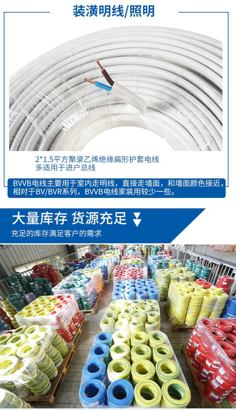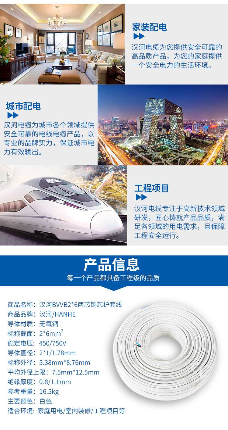 汉河电线 BVVB 26mm²国标2芯硬护套线铜芯家装电线家用明线